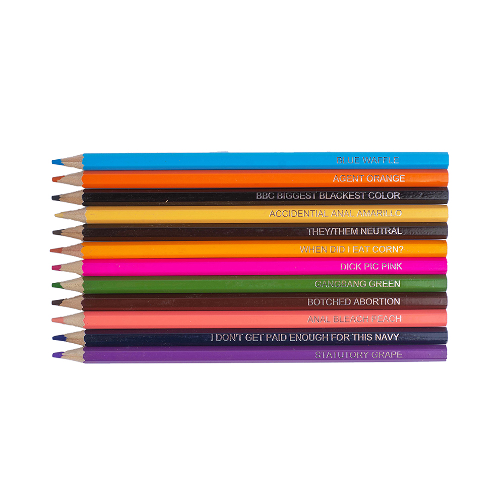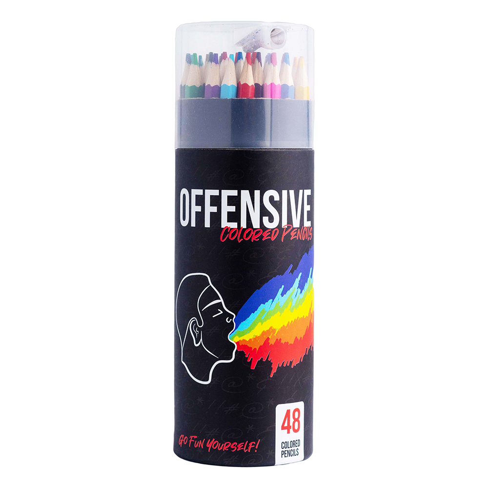 SET OF 48 COLORED PENCILS – Pre-sharpened for better stabbing…or coloring. We’re not liable with what you do with them. Built-in sharpener included. COLOR NAMES YOU WON’T FIND ELSEWHERE- Blue Waffle, Barely Legal Lime, Mentally Ill Mango, Back to the Fuchsia…and more ridiculous colors you won’t believe some factory allowed us to print. Same colors in each box.100% Satisfaction Guarantee – That they’re actually colored pencils, and not anything else. Functional, sexy, and some would say the best gift you’ll ever give someone outside of Plan B.